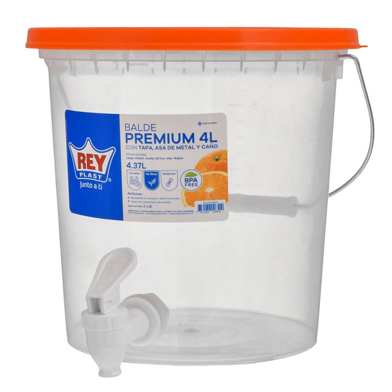 Balde plast.rey premium c \ tapa \ asa caño surt.ref:blx503800 (4l)