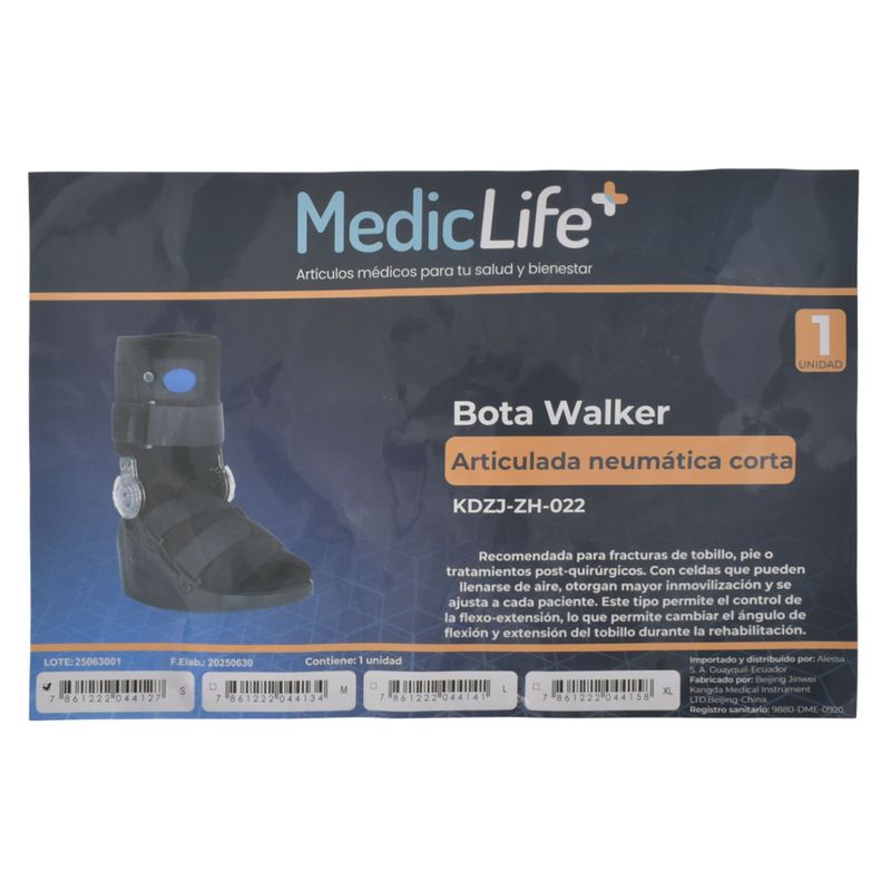 SaludLínea OrtopédicaInmovilizadoresBota walker caña baja neum. control flex \ ext ref:kdzj-zh-022 (s)