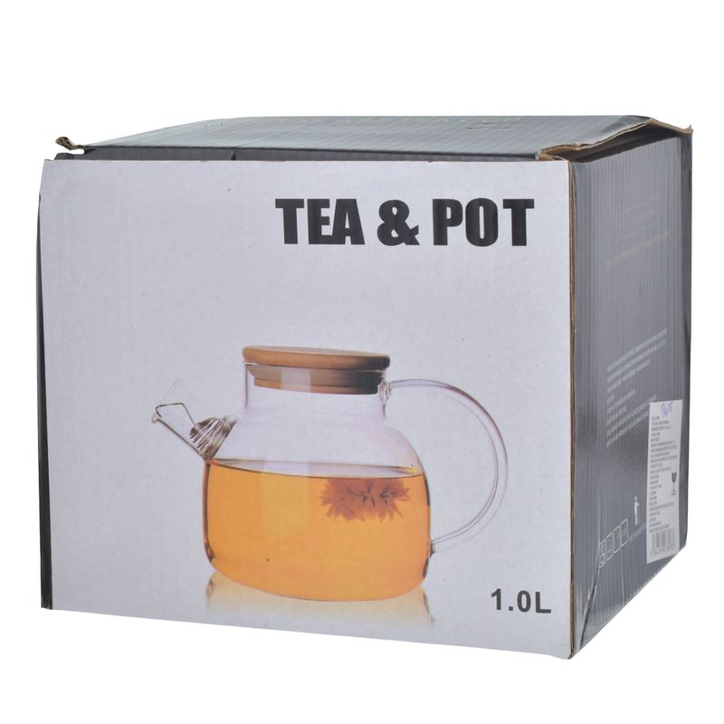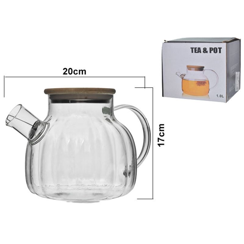 Tetera vidrio c \ tapa bamboo ref:es27893 (d13x13cm) (800ml)